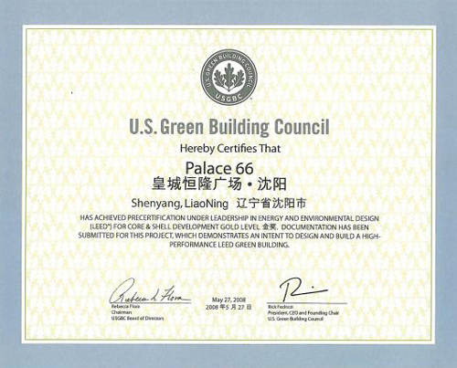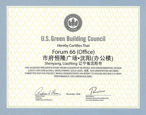 沈阳市府恒隆广场荣获能源及环境设计先锋奖 核心及外壳组别金奖