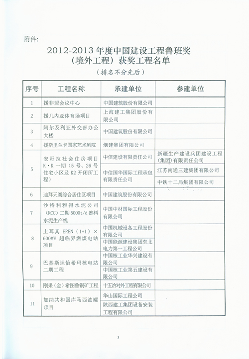 我司监理的援非盟会议中心项目(1)、援斯里兰卡国家艺术剧院(4)、援加蓬体育场(15)荣获境外鲁班奖