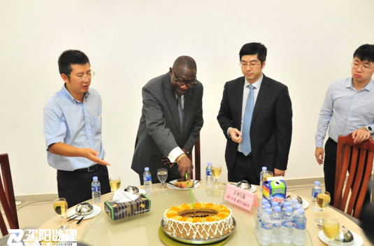 右1管理组长张禹良、右2技术组长幸振江、右3经商处参赞孙亮、右4合作局驻场代表邓宏