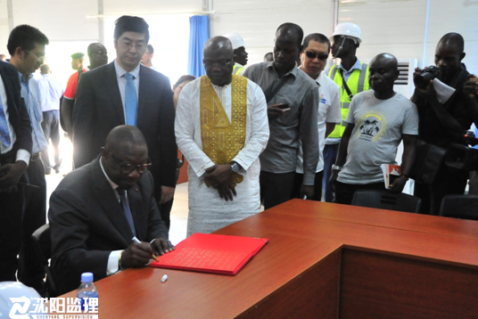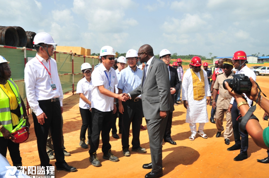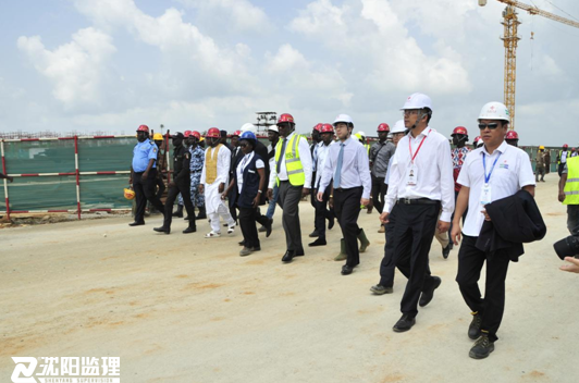 2018年1月12日上午11时,科特迪瓦体育部部长François AMICHIA及体育部各部门负责人莅临援科特迪瓦阿比让体育场项目,在经商处参赞孙亮、合作局驻场代表邓宏、现场管理组及施工技术组主要管理人员的陪同下,视察了施工现场、现场搅拌站、现场实验室及办公区,由科方体育部驻场负责人DIOMANDE AFFOUSIATA对目前项目施工情况进行汇报。期间邓宏代表与François AMICHIA部长友好交谈并希望部长能再次来现场参观。