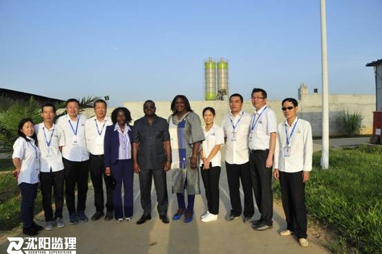 管理组人员与体育部办公室基础建设部主任ABE(左5)、体育部办公厅主任Moumouni SYLLA、体育部办公室总经理YODA(左7)合影