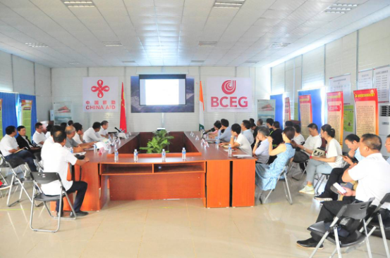 在随后的报告会中,首先播放了援科特迪瓦阿比让体育场项目简介及设计理念短片,然后由管理组组长和技术组组长进行工作汇报,最后由张明武处长总结发言,会议主要强调以下几点:1、高度重视援外项目是对外工作的重要手段。2、注重项目安全质量,质量第一、安全至上。3、加强党建及对外宣传工作。4、一定要按期完工,执行合同规定。5、设计变更控制按程序要求做,不可预见费的使用要符合要求。6、与科方沟通好,避免后续劳务纠纷等问题,应有预案,不能发生恶性事件。