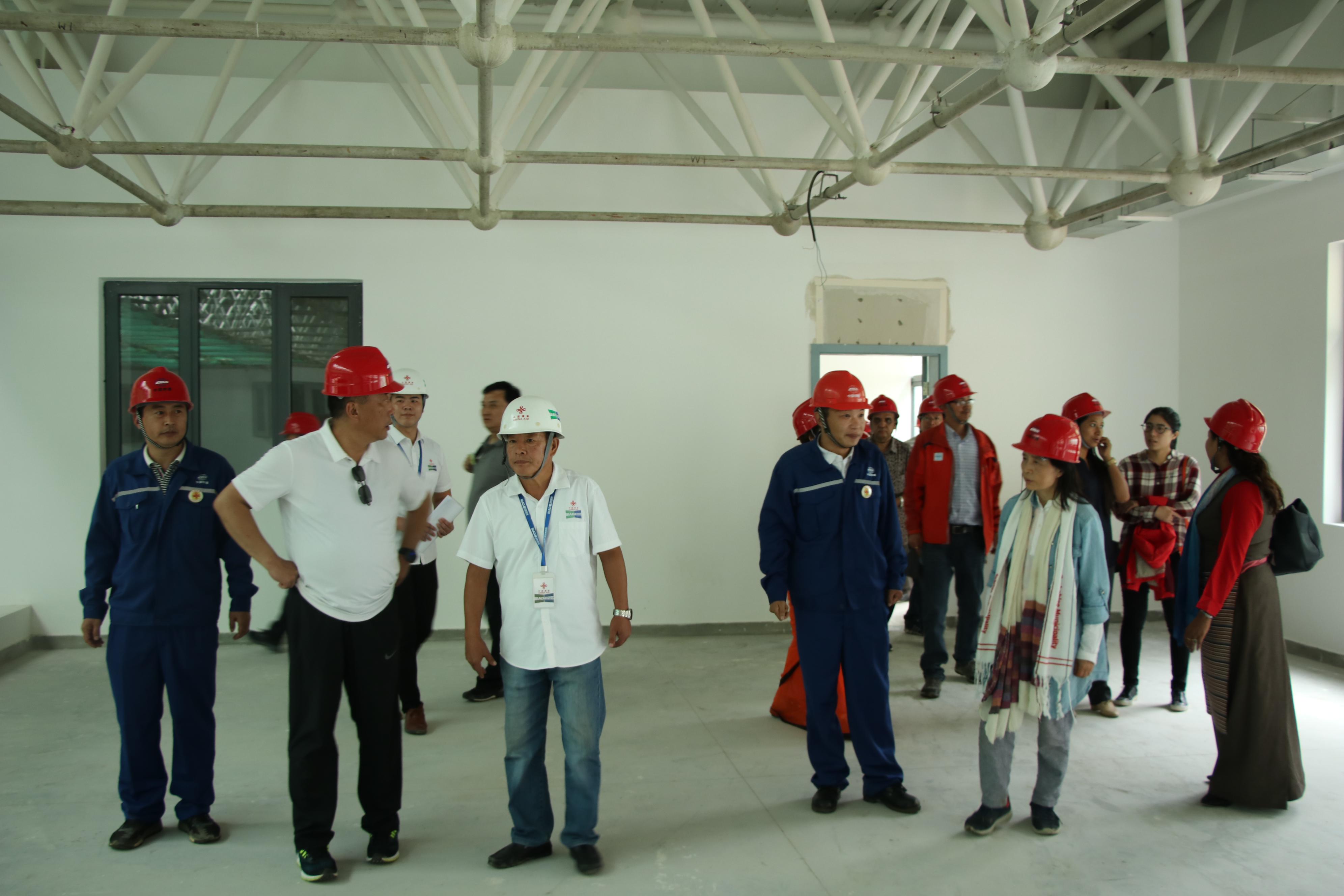 现场管理组与施工技术组相关人员陪同中尼双方代表视察