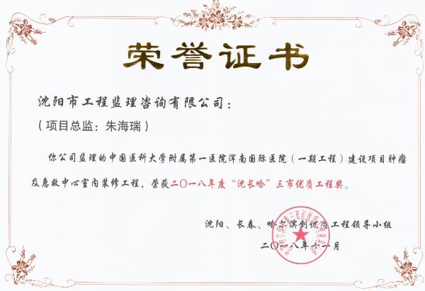 “沈、长、哈三市优质工程观摩”是由沈阳市、长春市和哈尔滨市,三市建筑业协会及建设工程质量监督站联合举办,该活动自1985年创办至今,已经整整33年的历程。每年都会涌现出一座座优质精品工程。本年度,经过观摩团专家严格评选,中国医科大学附属第一医院浑南院区一期工程喜获2018年度“沈长哈”三市优质观摩工程奖。