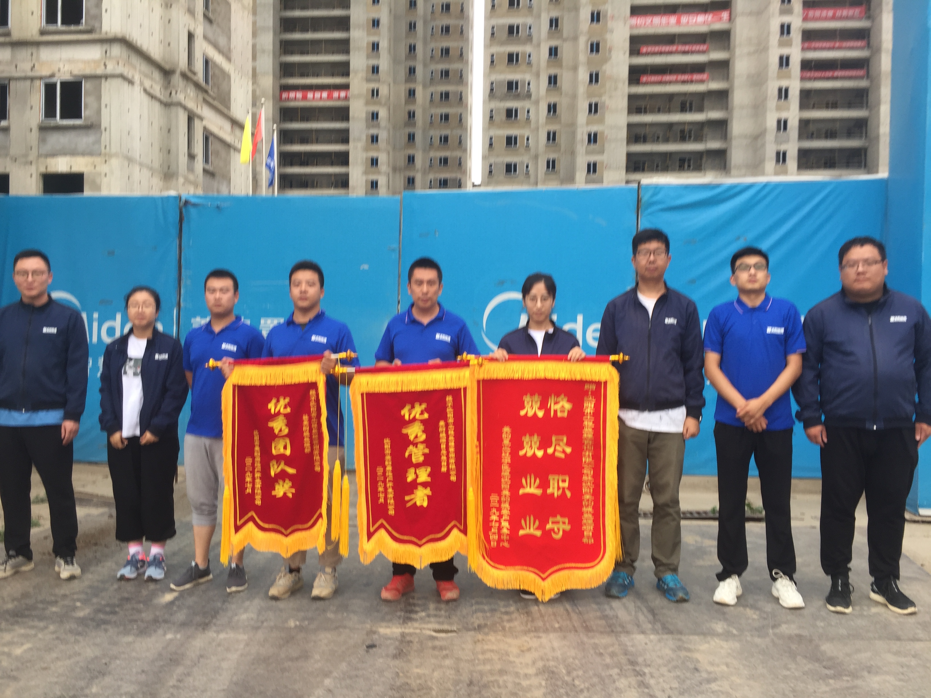 随着2019年6月30日美的城项目三期一标段顺利封顶及四期四标段的顺利交付,美的城项目部分单体已经交付,即将投入使用,取得圆满成功。驻场的每一位监理人员克服困难、不怕苦累,为了共同的目标团结奋战,时刻秉持着沈阳监理人“守法、诚信、科学、公正、专业、廉洁”的工作态度,尽职尽责,做好监理工作,终不辱使命,监理工作取得一定的成绩,得到业主方的高度认可,也完成公司的嘱托。美的城建设单位及客服部各领导对我司监理部工作非常认可并给予高度评价,并颁发锦旗“优秀团队奖”及“恪尽职守,兢兢业业”以及对项目总监白舸授予“优秀管理者”以示鼓励。