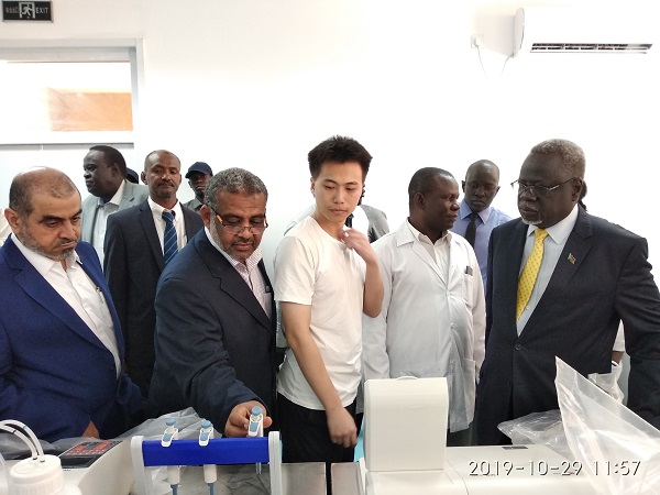 南苏丹卫生部部长库克及医疗专家在门急诊楼检验科听取检验设备功能介绍