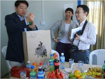 9月23日上午,中华人民共和国驻肯尼亚特命全权大使、中国常驻联合国环境规划署代表、中国常驻联合国人类居住署代表邓洪波和秘书沈淦等领导来到我公司监理的援肯尼亚医院项目,对项目的现场及生活区进行视察,对工程质量、进度及生活区环境十分满意,对监理工作给予了肯定,视察完毕后,召开工地会议听取近期工作汇报,会后赠送礼物对中方工作人员表示亲切慰问。
