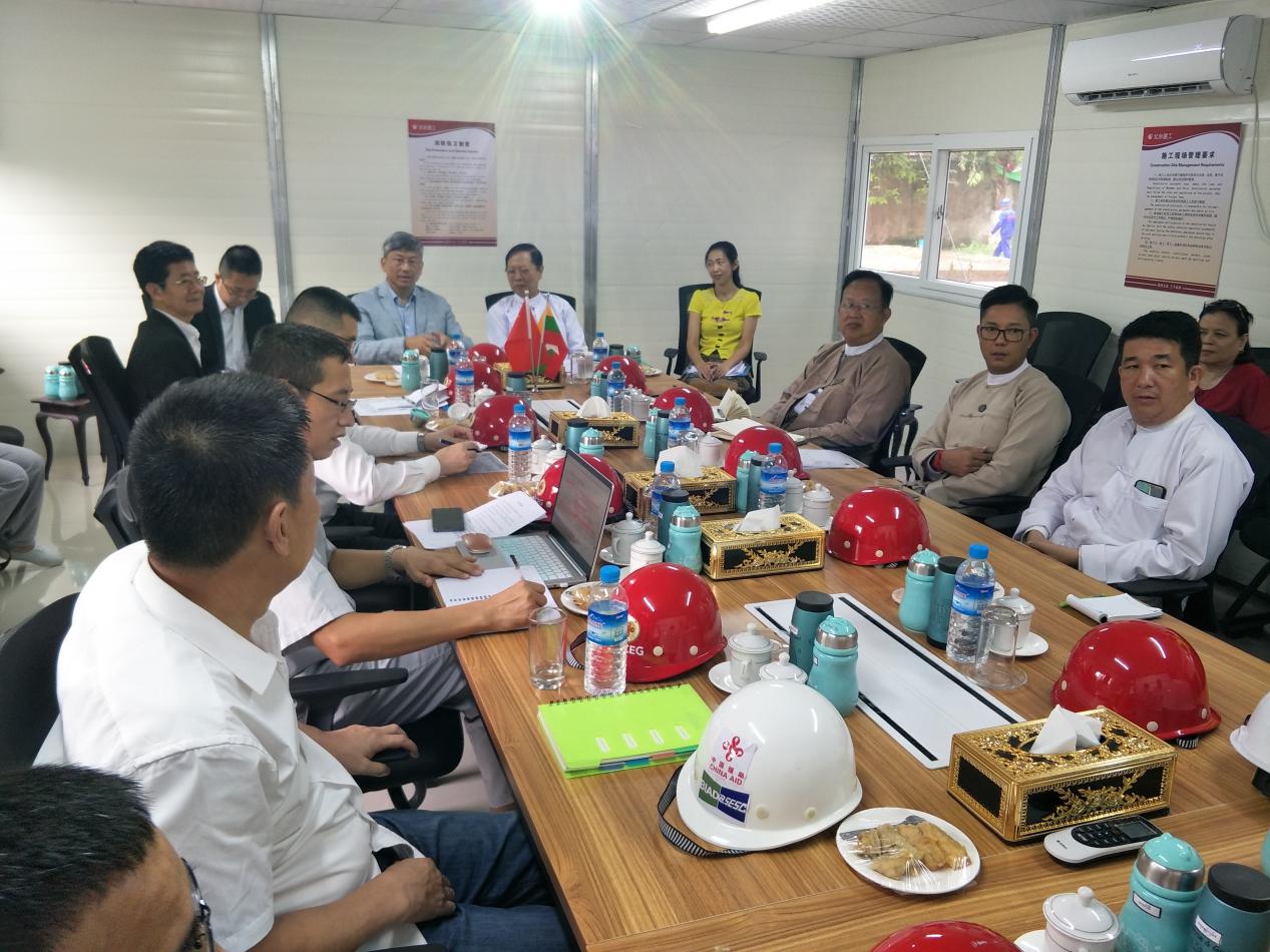 项目管理组、施工技术组与刚方项目管理组代表共同向刚果共和国工程学院学员军官介绍项目概况、使用功能及施工完成情况。在会议上卢夫瓦先生着重强调了本项目是中国援建项目,是中刚合作的典范,中、刚双方要共同协作,克服困难,保证项目的顺利实施。