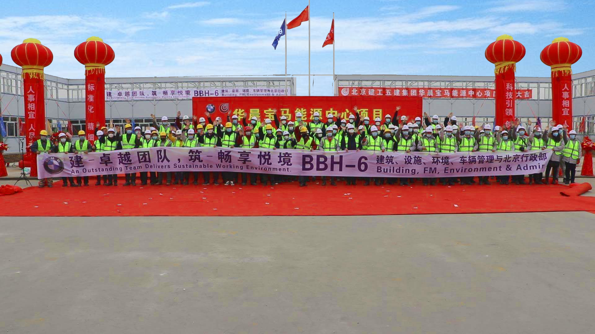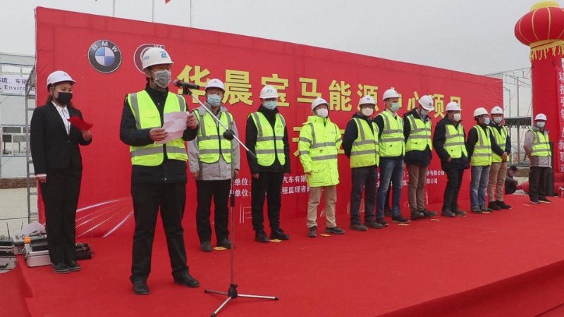 2020年3月21日上午,华晨宝马能源中心项目工地现场彩旗飘扬华晨宝马能源中心项目工程开工奠基仪式在这里隆重举行。华晨宝马汽车有限公司BBT-1-N 项 目 经 理 Jochen Esmann 、 Konnerth wilhelm,BBT-101厂区规划高级经理黄磊,BBH-6-N 高级经理 Lydia 项目施工总负责岳志强、外场项目经理王匆,区域经理杨超,生特瑞工程股份有限公司项目总监童国栋,沈阳监理副总裁刘晓伟,东风设计院土建经理张弘祖,北京建工五建集团沈阳区域经理季斌,项目经理宋宁,各参建单位人员共同参加了此次开工仪式。