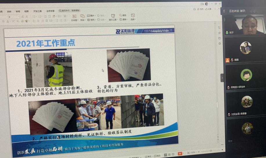 回顾2020年,沈阳监理在疫情下攻坚克难,以坚持稳中求变的工作总基调,持之以恒抓重点补短板强弱项,统筹谋划各项目,提高效能项目,稳固发展搭建精细管理框架传递体系。每年一度的述职汇报是全面了解、核实和考评各项目、职能部门表现情况,是高质量考核促进高素质团队建设和事业发展的一项重要活动。