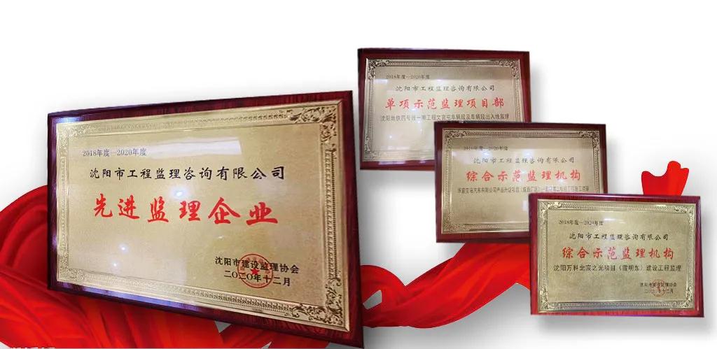 沈阳市工程监理咨询有限公司做为辽沈地区知名监理企业,内强素质、外树形象,不断提升企业管理水平,不断追求卓越,创造经典。我公司再度荣获沈阳市建设监理协会授予的“2018-2020年度先进监理企业”荣誉称号,华晨宝马汽车(铁西厂区)二标段、沈阳地铁四号一期工程文官屯车辆、万科北宸之光项目段荣获“示范监理机构”,朱海瑞、高宇、朱鹏博被授予“优秀总监理工程师”荣誉称号。