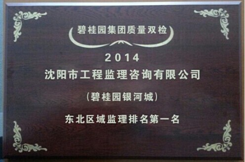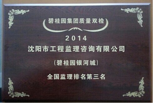 2014年6月,在碧桂园集团第二季度质量双检评比活动中,在全国八十余家碧桂园受检单位中,我公司监理的碧桂园银河城项目以83.44分的好成绩,取得碧桂园全国监理总排名第三,碧桂园东北区域监理排名第一的骄人战绩,这也是东北区域在全国碧桂园集团检查中首次排名进入前三。