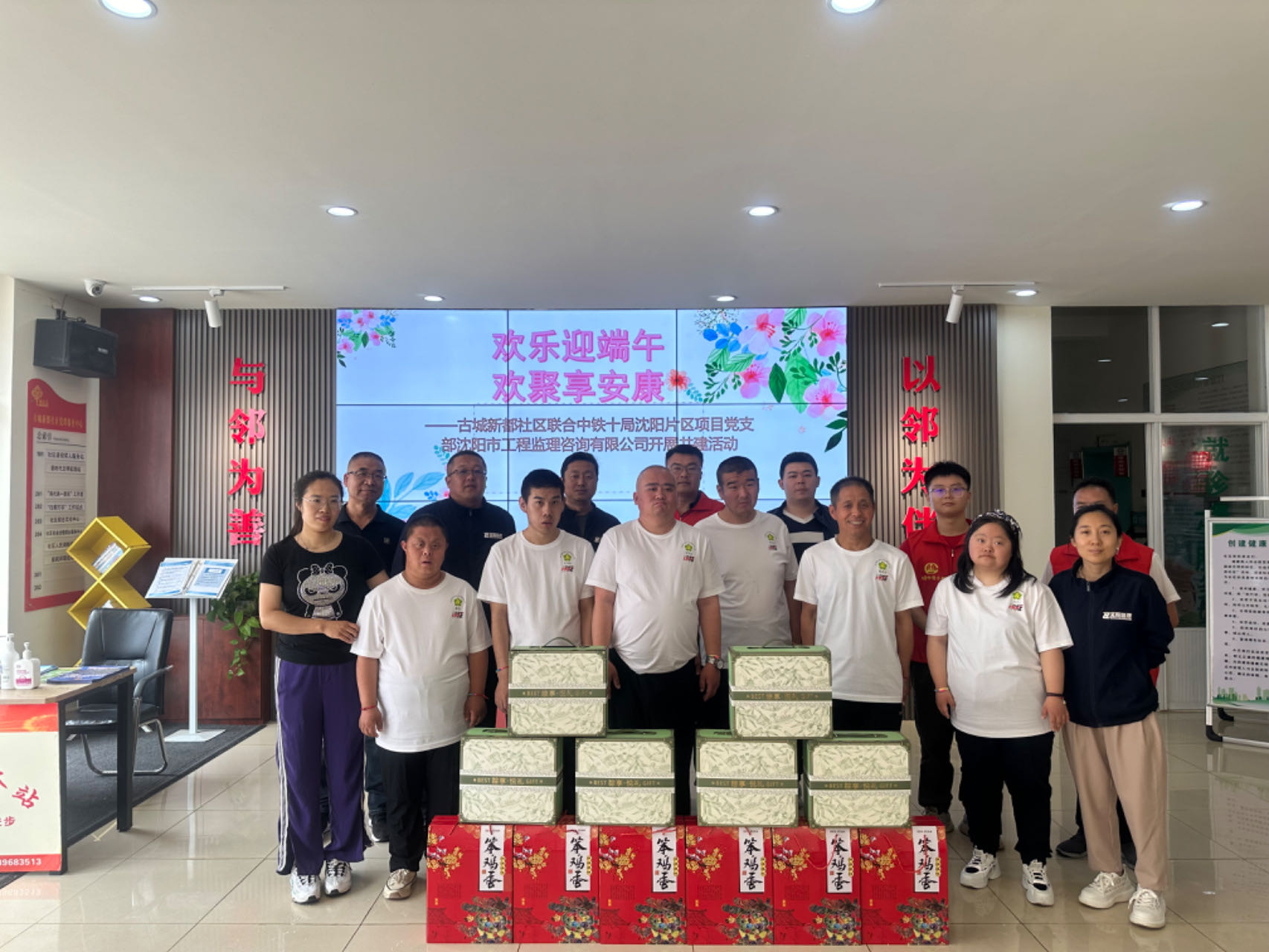 浓情端午送祝福,节日慰问暖人心。为传承中华民族优秀文化传统,弘扬沈阳监理传递温暖、回馈社会,以善行构筑梦想的大爱精神。沈阳地铁6号线项目监理部联合中铁十局沈阳片区党支部、古城新区社区共同开展“欢乐迎端午,欢聚享安康”共建活动。项目人员将承载着关爱和温暖的粽子、鸡蛋等慰问品送到智障人士手中,并为他们和家人送上端午节的祝福.