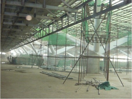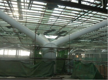 屋面1 下树杈钢柱、梁安装及屋面采光顶安装完成
