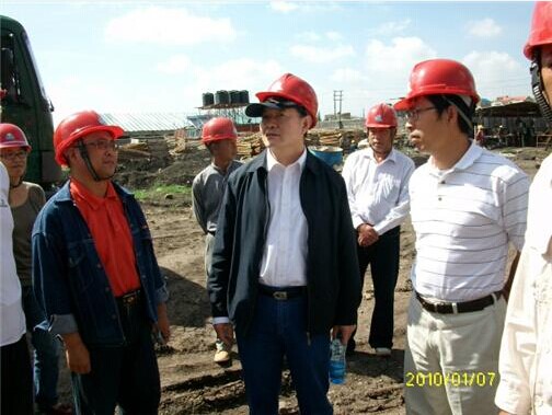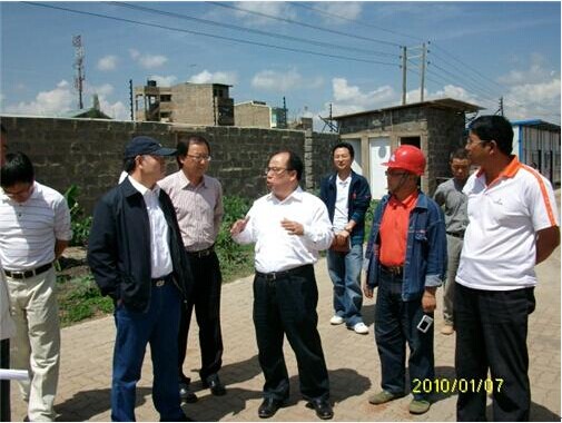 2010年1月7日上午,援外司王司长在姜伟参赞的陪同下,莅临我公司监理的援肯尼亚医院项目,王司长一行在我公司监理组长金荣山等人的陪同下视察了病房楼等单体工程及参建人员生活区,对工程整体质量和进展情况表示满意,对参建各方的工作给予了肯定,并要求参建各方做好中期验收的实体自检及技术资料准备工作,制定切实可行进度计划,保证项目按期投入使用。