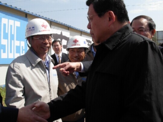 陈德铭部长一行在监理小组费坚、张少纯等人陪同下视察现场