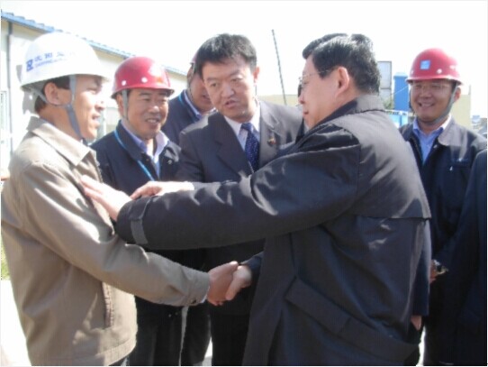 陈部长对监理小组工作表示赞许与监理组长费坚亲切握手