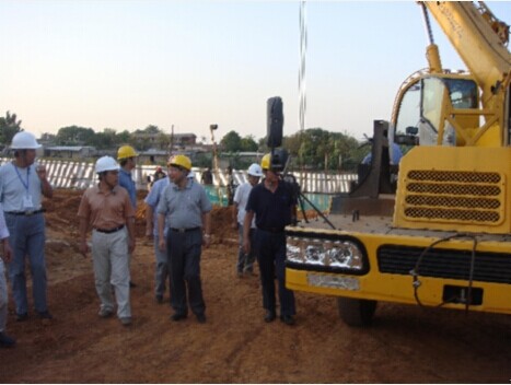 庞参赞一行在监理小组陪同下了解现场情况(右二为监理工程师付东昇)