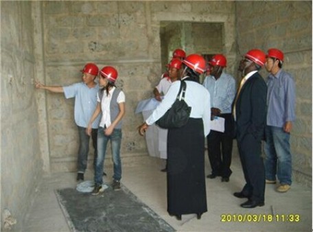 3月18日上午,肯尼亚国家卫生部常务秘书莅临我公司监理的援肯尼亚医院项目视察,在我公司监理组长金荣山、监理工程师张新儒及设代、施工技术组等人员陪同下参观了门诊楼、医技楼及病房楼,并向工程技术人员详细询问工程使用功能及工程进展情况,表示非常满意。并先后三次表达了对中国政府的敬意。