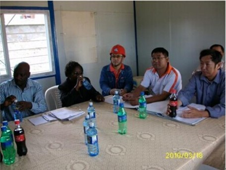 肯方领导问侯中方工作人员(左三为监理组长金荣山)