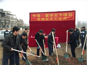 2010年3月22日,由我公司监理、中海地产开发的寰宇·天下项目开工奠基仪式在该项目工地上隆重举行。中海地产方项目经理鲍总、工程部经理董总、北方区助理总经理王总,我公司法人代表王志杰、项目总监冯郁、市场营销部部长王磊及施工单位南通二建均到场祝贺。