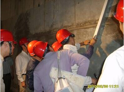 中检专家组组长黄传贽检查地下室顶板、梁混凝土