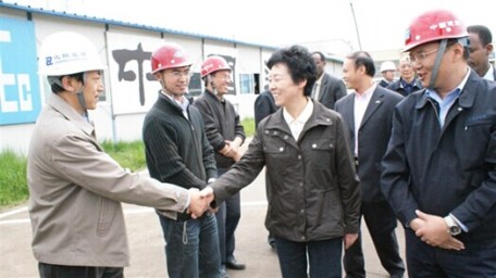 严副委员长与我公司监理组长费坚(左一) 亲切握手