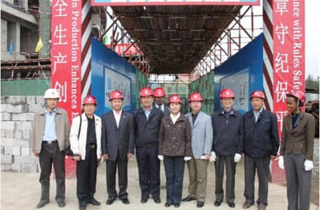 当地时间2010年4月13日上午,全国人大常委会副委员长严隽琪及中联部等相关领导亲临非盟会议中心项目现场视察工作。严副委员长首先听取了现场三方的工作汇报,在听取汇报后严副委员长对现场三方的工作给予了高度评价,并作出了重要指示,她说“非盟会议中心项目是新时期我国在非洲的一个标志性援助工程,它为促进中非关系的发展作出了积极贡献。我们十分重视发展同非洲各国家的关系,十分愿意拓展与非洲各国在经贸、文化和人员等各个领域的交流与合作。希望现场三方的工作人员,严把质量关,务必要把非盟会议中心项目建设成为一个高质量的示范工程。” 之后严副委员长及其随行在商务部代表曾花城、设计代表组组长周勇、施工技术组组长宋素东、项目监理组组长费坚等同志的陪同下,到非盟会议中心项目施工现场进行了视察。在视察过程中,严副委员长对项目的设计理念及工程建设的进度、质量、安全及下阶的管理工作提出了指导意见。