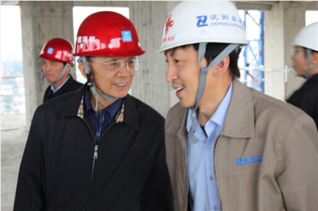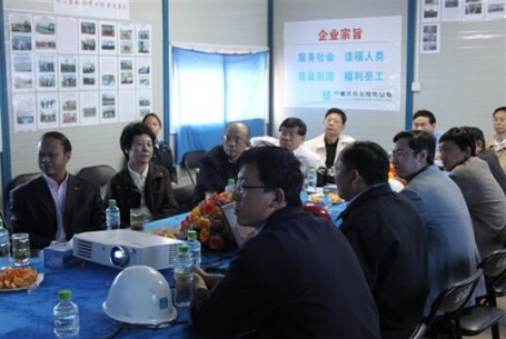 中联部副部长刘敬钦听取费总监介绍工地情况