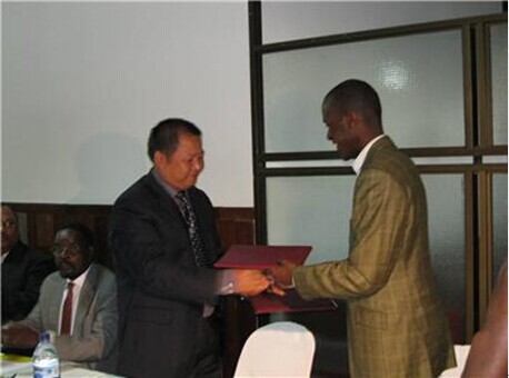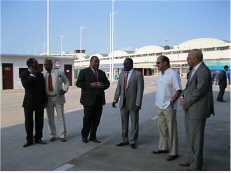 莫桑比克交通部部长(右三)抵达仪式交接现场