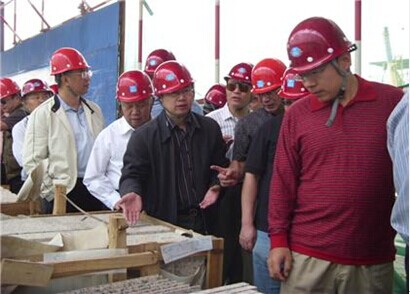 埃塞俄比亚时间2011年4月19日上午,由中国驻非洲20余国参赞组成的访问团莅临非盟会议中心项目现场参观、慰问。在现场专职代表曾花城、施工技术组组长宋素东、项目监理组组长龚敬等同志的陪同下,到非盟会议中心项目施工现场进行了视察。
