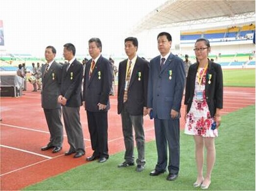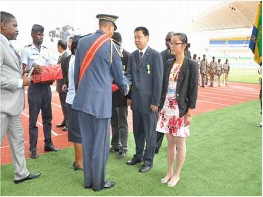 2011年11月27日,在加蓬首都利伯维尔市,加篷体育场项目移交仪式盛大举行。这座由中国政府援建、我公司监理的体育场被加方冠名为“中加友谊体育场”,加蓬总统阿里·邦戈亲自出席了移交仪式,并向我公司项目监理组组长张禹良等同志授予了“加蓬国家荣誉骑士勋章”。