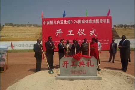 2012年2月29日上午,我公司监理的“援几内亚比绍体育场维修项目”在几内亚首都比绍市举行开工仪式。几比代总统佩雷拉、代总理南迪格纳携青体部长等7名内阁成员及比绍市常务副市长、我驻几比大使李宝钧、经商参赞居朝清及当地居民100多人出席仪式。
