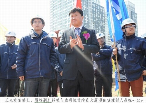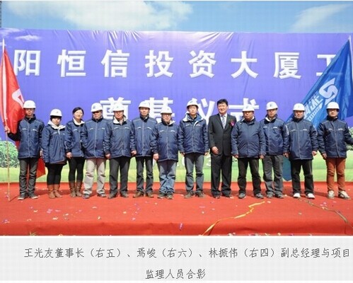 2012年3月30日上午10:18分整,由我司监理的沈阳恒信投资大厦项目开工奠基仪式正式开始。公司董事长王光友、副总经理焉峻、林振伟一行领导应邀参加了奠基仪式。王光友董事长亲自为项目剪彩并培土奠基。