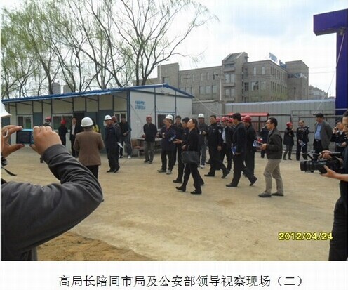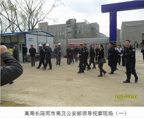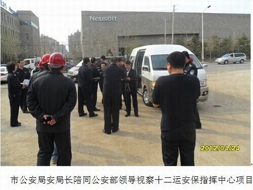 2012年4月24日,公安部相关领导在市公安局安局长、东陵区(浑南新区)公安局高局长、浑南基建办赵主任陪同下莅临十二运安保指挥中心项目视察指导,各位领导仔细聆听了沈阳监理驻十二运安保指挥中心项目总监杨杰男的工作汇报,对我司的监理、管理工作、项目的创新型建设成果及对项目的进度、质量、安全、文明施工情况给予了高度评价。