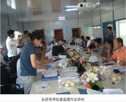 2012年7月23日上午9点辽宁省建筑工程安全监督站达标检查组对我司在监项目华润橡树湾2.2期一标段进行检查,本次检查沈阳市共7个项目参检,我司华润橡树湾2.2期是于洪区唯一一个参检项目。参加此次检查的领导有:省建筑工程安全监督站顾站长、刘站长及省、市、区专家组成员;市安全监督站的张风华站长及专家;于洪区安全监督站的董志铁站长、房爱征站长等人员。华润橡树湾项目总经理饶扬明、宋亮总工程师及我司金星总经理、黄东升总监全程陪同省、市、区领导检查。