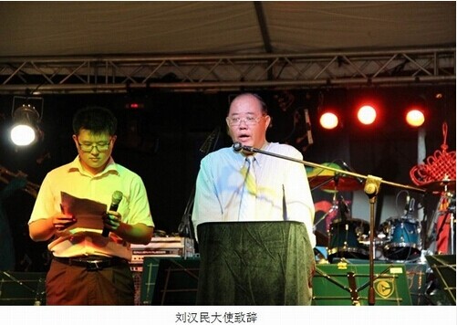 本场晚会主持分中英两个部分,项目管理组闫明参与主持。首先,刘汉民大使致辞,他代表大使馆和驻安巴中资企业全体人员对中国军乐团的到来表示热烈欢迎,刘大使高度评价驻安巴机场项目各参建单位发扬吃苦耐劳、勇于奉献的精神,克服当地天气炎热、工作环境较差、生活条件简陋、远离祖国和亲人等多重困难,出色地完成施工任务,受到安巴各界和广大人民的称赞和好评,感谢大家为中安友谊合作关系做出的重要贡献。