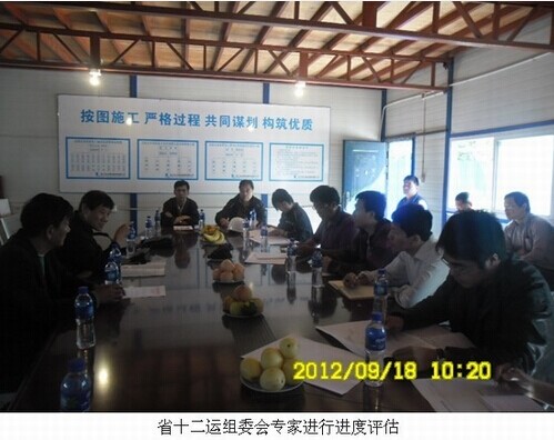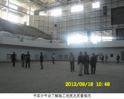 2012年9月18日上午10:20分,省十二运组委会专家组莅临沈阳大学体育馆进行十二运场馆建设进度评估。沈阳监理金贞玉总监肩负本次进度评估讲解任务,各位专业监理工程师配合专家组针对现场施工进度质量情况进行分析、讨论;专家组听取汇报后,各专业监理工程师及项目经理陪同专家进行了现场考察。各位专家称赞沈阳大学体育馆是十二运新建项目中在保证施工质量的同时施工进度最快的工程项目。各位专家对监理单位及施工单位的工作成果给予高度评价。