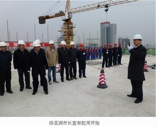 2013年4月23日上午9:00时,南科大厦项目PC构件吊装仪式正式启动,杨亚洲市长一行领导亲自观摩了此次吊装仪式。