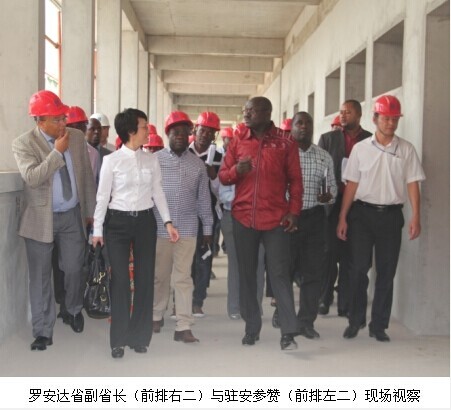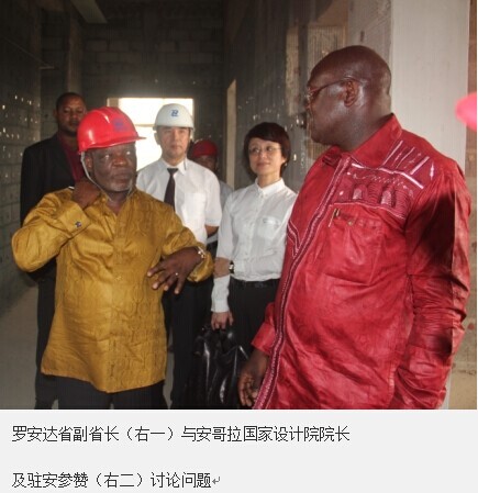 2014年1月15日当地时间9:00,安哥拉罗安达省副省长、建设厅长一行在中国驻安哥拉使馆经商处参赞夏晓玲等中方人员陪同下,来到援安哥拉罗安达省总医院项目现场,与国内考察组共同商讨、研究、解决外管网排水和医疗工艺设备问题。事后,副省长一行参观了项目施工现场,对工程设计和施工质量表示非常满意。他说:“这种规划格局的医院,只在欧洲才能见到”。对正在施工的内墙抹灰防止墙体裂纹采取的一系列措施给予肯定。
