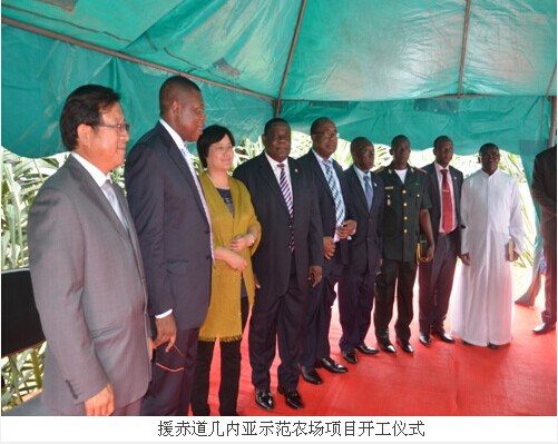 开工仪式由赤方涅方市市长热情洋溢的欢迎辞开始。江西赣粮公司董事长介绍了项目情况。中国驻赤道几内亚使馆经商参处参赞在仪式上致辞。他表示中、赤两国政府和人民的友谊源远流长,赤道几内亚示范农场项目的顺利开工,标志着两国友好合作关系在大农业领域的交流与合作翻开了新的篇章。希望中、赤双方共同努力使得项目早日建成使用,为促进赤道几内亚经济发展和提高当地人民生活水平做出贡献。赤方农林部部长致辞感谢中国政府向赤方提供的无私援助,并表示赤方高度重视农业发展,相信该项目日后必将对当地畜牧产业发展起到巨大的示范作用,造福广大人民。