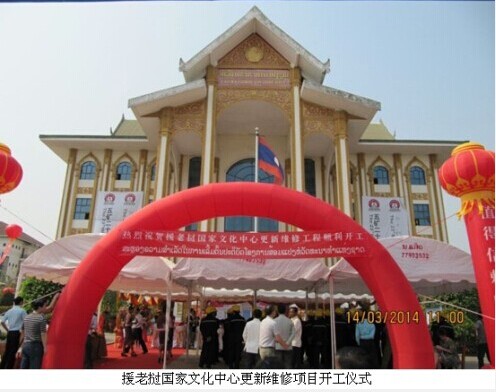 2014年4月14日,由我公司监理的援老挝国家文化中心更新维修项目,在老挝人民民主共和国万象市国家文化中心隆重举行了开工仪式。老挝国家文化部长波恩·莎普翁博士、老挝文化中心馆长Boonchan PUNTHAVONGSY、中国驻老挝大使馆大使关华兵、经商处参赞赵文宇、我公司驻援老挝国家文化中心更新维修项目监理组长杨玉明、中国建设东北设计研究院有限公司设计代表刘国新、五矿二十三冶建设集团有限公司党委书记宁和球、公司副总谢曦、项目组长梅昌猛、总工周自雄及老挝各界朋友均参加了此次的开工仪式。