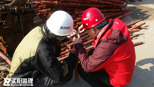 项目监理人员与施工单位技术人员共同检查支架壁厚