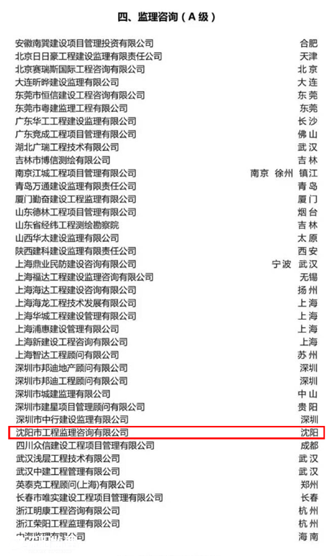 万科根据供应商评估管理体系,采用第三方质量评估成绩与项目现场合作评价相结合的评分办法,万科对总包、装修总包、景观绿化、门窗幕墙、基础工程、材料设备七大类合作供应商进行了分级:合格供应商1422家,A级供应商299家,其中入选名录中监理咨询A级供应商39家,监理咨询B级供应商68家,监理咨询C级供应商87家,沈阳监理成为沈阳地区唯一一家入选万科监理咨询A级供应商名录的监理企业。