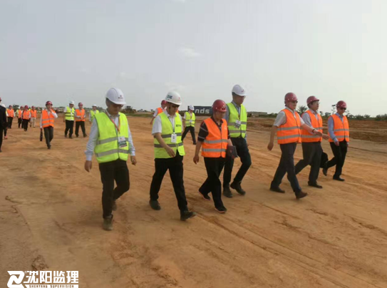 在现场管理组及施工技术组全体管理人员的陪同下,各位领导参观了施工现场和生活区,并听取了项目施工情况汇报。援科特迪瓦体育场项目于2016年12月10日正式开工,工期30个月,总建筑面积61250m²,看台布置约6万个座位,采用钢筋混凝土结构和PTFE膜材罩棚,罩棚使用钢结构桁架支撑。项目管理单位为北京市建筑设计研究院有限公司和沈阳市工程监理咨询有限公司联合体,总承包单位为北京建工集团有限责任公司。
