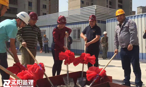公司董事长王光友与沈阳美的房地产开发范雪梅总经理参加封顶仪式
