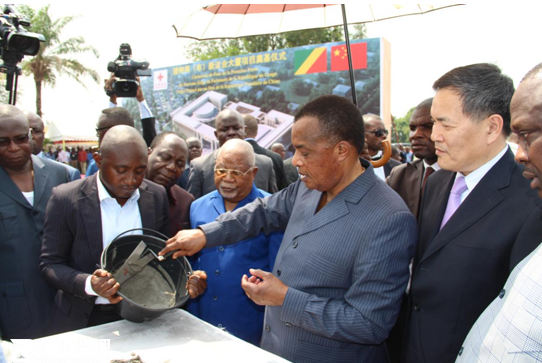 奠基仪式在欢快友好的氛围下开始,在刚果(布)当地群众载歌载舞的喜庆气氛中圆满完成。