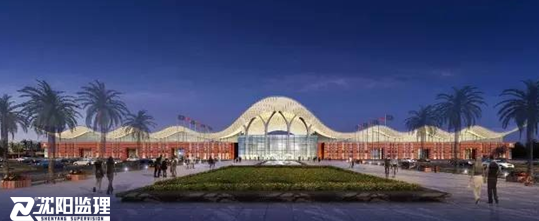 援孟加拉孟中友谊展览中心项目总建筑面积3.3万平方米,总投资额约4.9亿人民币,该项目计划于2019年年底完工。该项目建筑设计主要根据当地气候条件和人文特征,从建筑材料选择和建筑的内外部空间组织入手,营造独具特色的建筑形象。设计中建筑外墙主要采用陶板幕墙、玻璃幕墙、安石粉涂料及不锈钢金属穿孔板,屋顶大屋檐采用金属铝单板装饰,其余屋面采用TPO防水材料(白铝灰)。同时结合礼仪广场设计大尺度的灰空间(登陆厅),力争使展览中心成为本地区的标志性建筑,主体红色的陶板外墙,铝灰色的波浪形大屋顶,象征着中孟友谊之船,贸易之船。