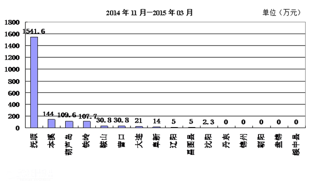 3.从罚款的金额看,抚顺处罚力度最大,平均每月处罚额度在300万元以上;本溪、葫芦岛、铁岭平均每月20万元以上;丹东、锦州、朝阳、盘锦、绥中至今没有实施处罚。