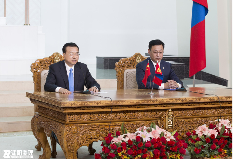 7月14日,李克强与额尔登巴特在乌兰巴托国家宫共见记者。双方表示愿保持两国关系发展正确方向,尊重彼此核心利益和重大关切。双方同意加快推进中方“一带一路”与蒙方“草原之路”战略对接,希望加强畜牧业加工和住房建筑等领域的合作。
